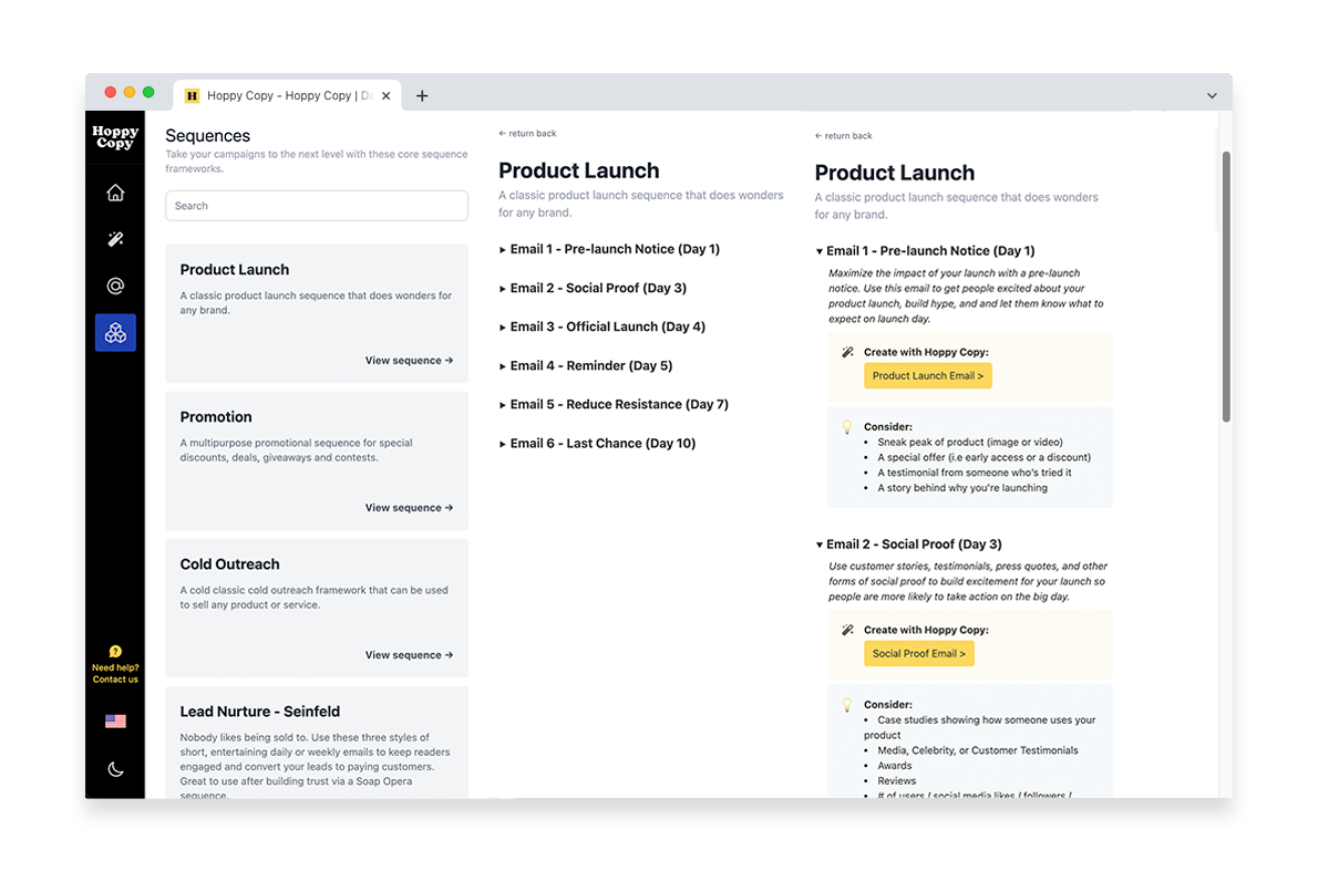Planning a product launch, promotion, or event? Hoppy Copy has got you covered with its ability to generate multi-day sequences. Streamline your communication and keep your audience informed across multiple emails with ease.